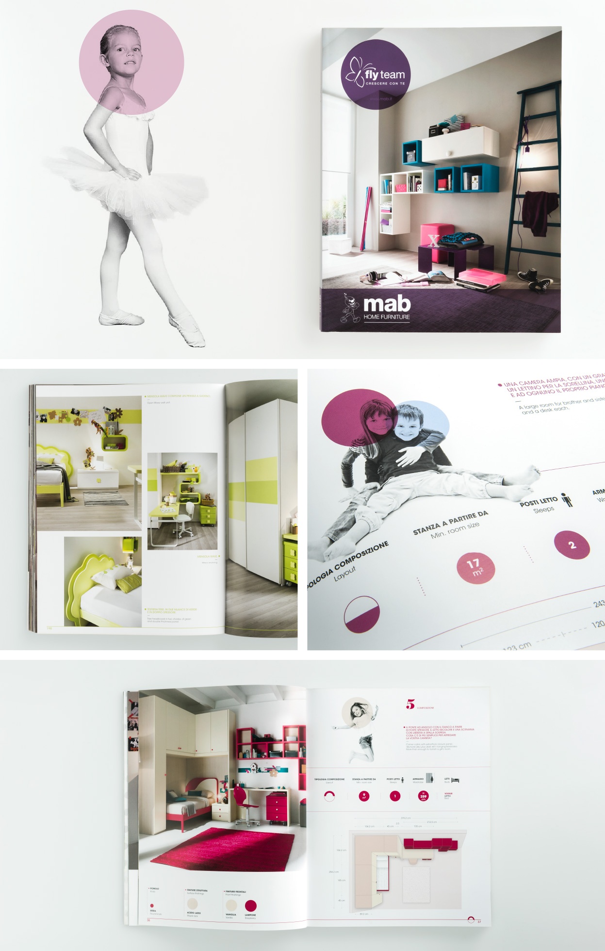 Mab Home Furniture è un’azienda specializzata in composizioni d’ambiente ed elementi d’arredo che favoriscono il benessere delle persone nell’ambiente in cui vivono. Valorizzando l’identità del brand, o-zone ha seguito la realizzazione dei cataloghi di tre linee di arredamento e del sito istituzionale. Per Fly Team, linea di camerette per bambini e ragazzi, abbiamo scelto di “dare spazio allo spazio”: alle foto ambientate abbiamo affiancato le planimetrie, indicando le misure per una maggiore consapevolezza degli ingombri e delle possibilità di arredo. Anche i plus di prodotto sono stati rappresentati con infografiche di facile lettura, caratterizzate dalle cromie portanti degli stessi prodotti.