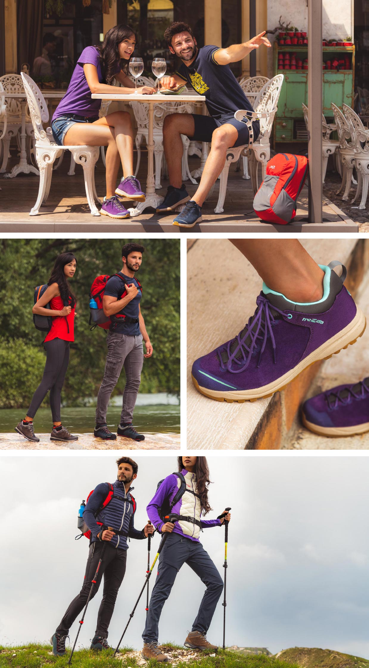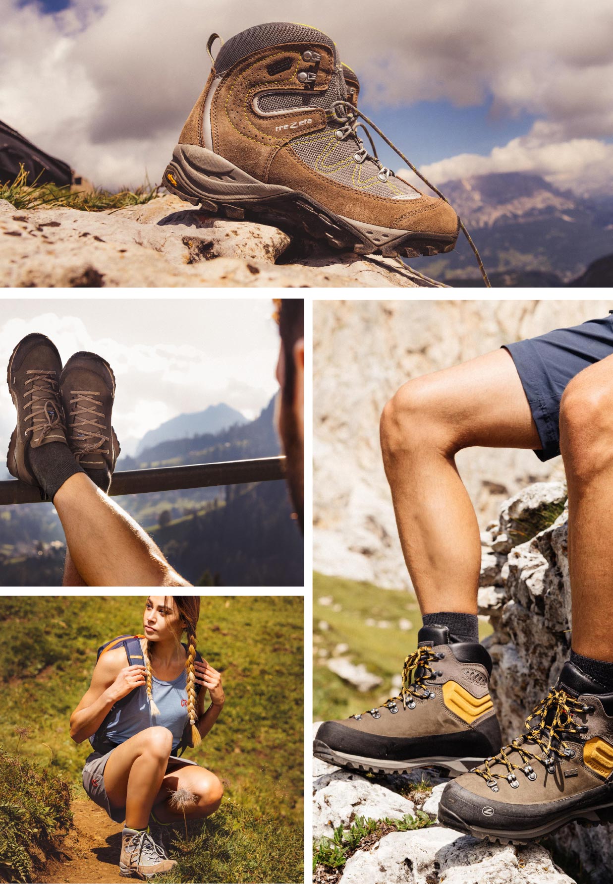 I materiali fotografici e video sono realizzati da o-zone in location montane o in centri storici, a seconda della tipologia di calzatura e del target a cui si rivolge il marchio.